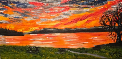 Original oil painting signed by artist and varnished. One of a kind. 20 by 24 streched canvas. Framed