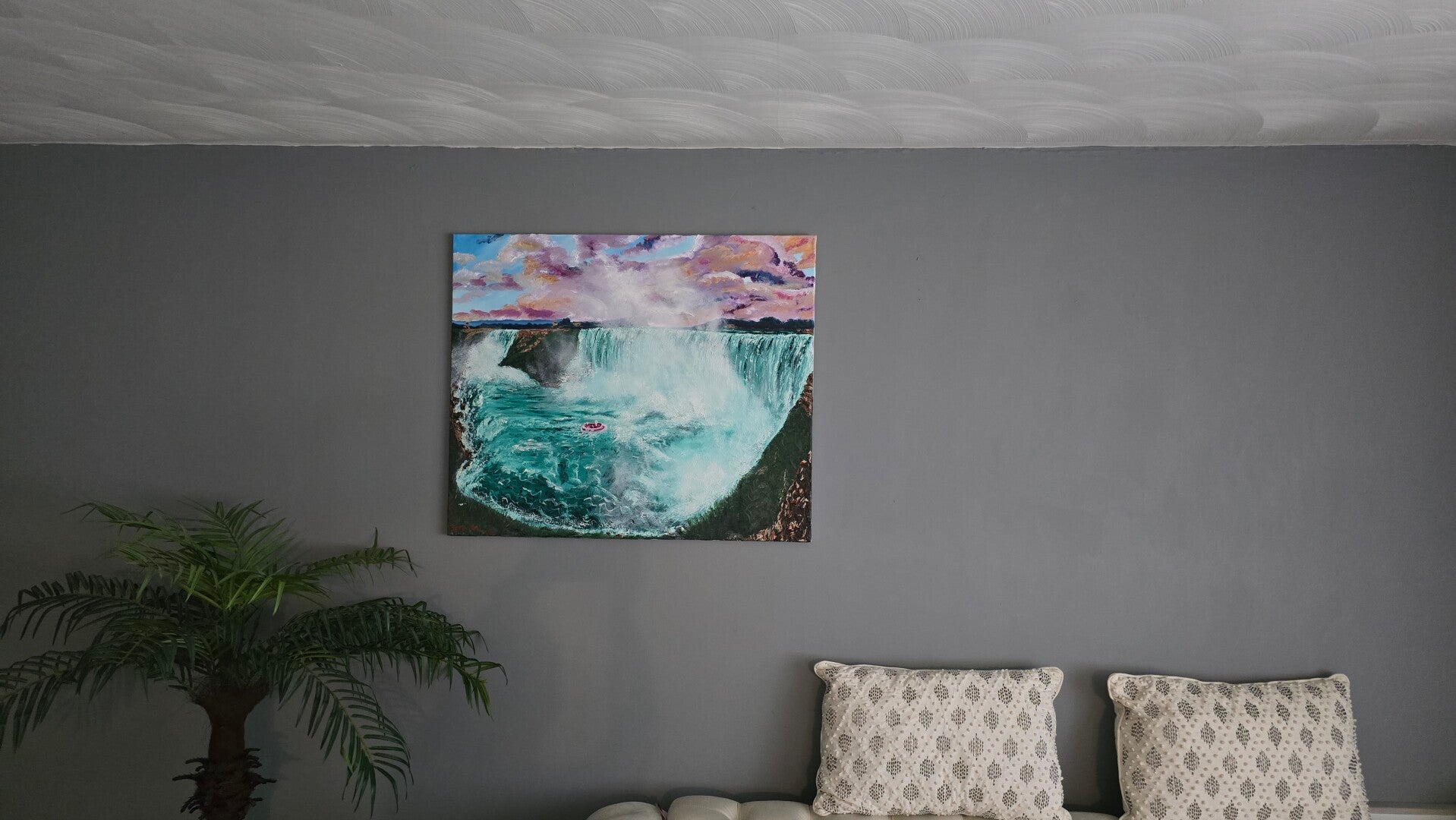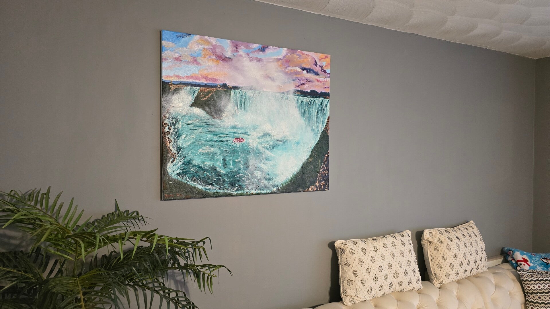 Original oil painting signed by artist and varnished. One of a kind. Streched canvas 30 by 36 inches.