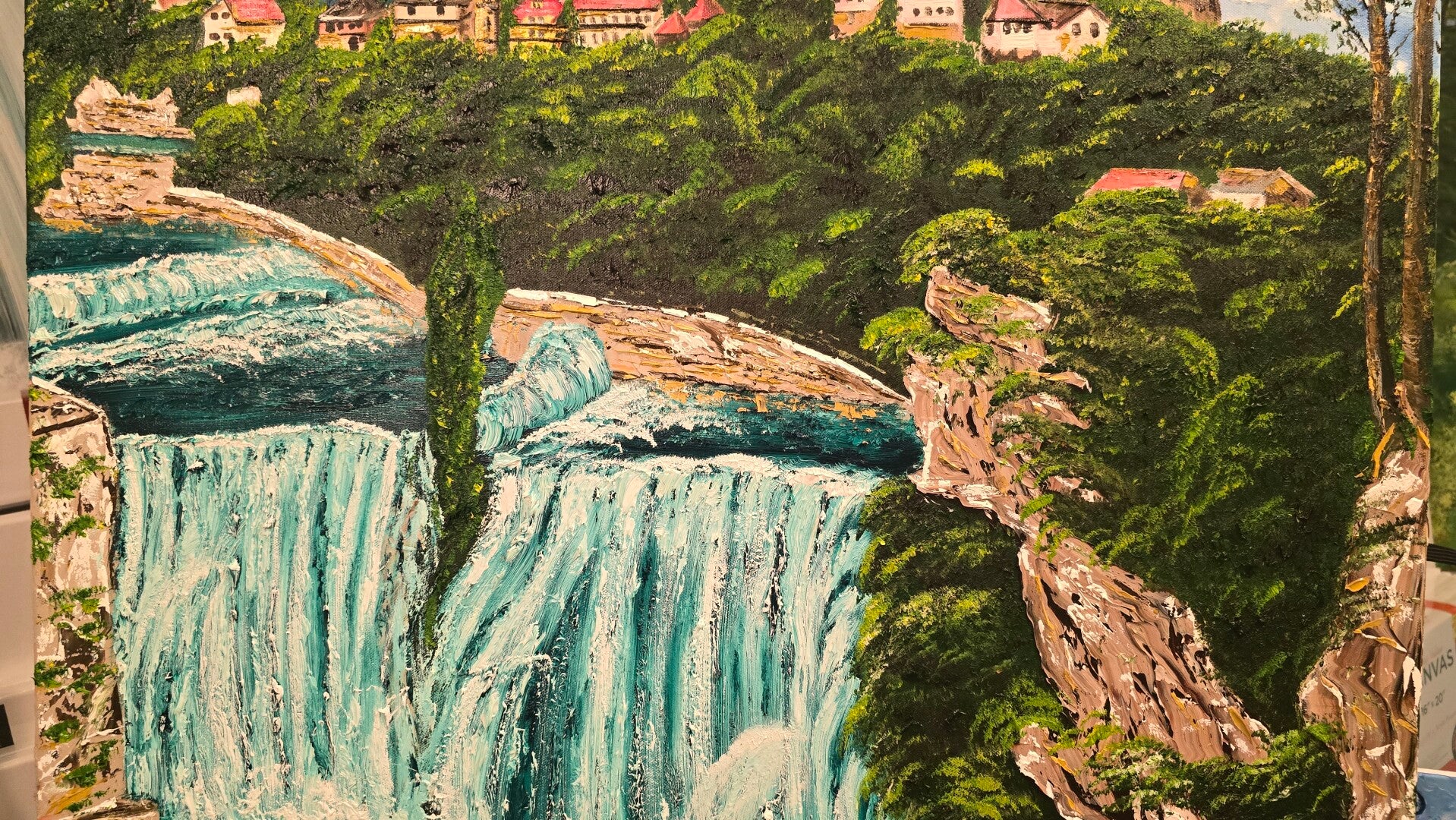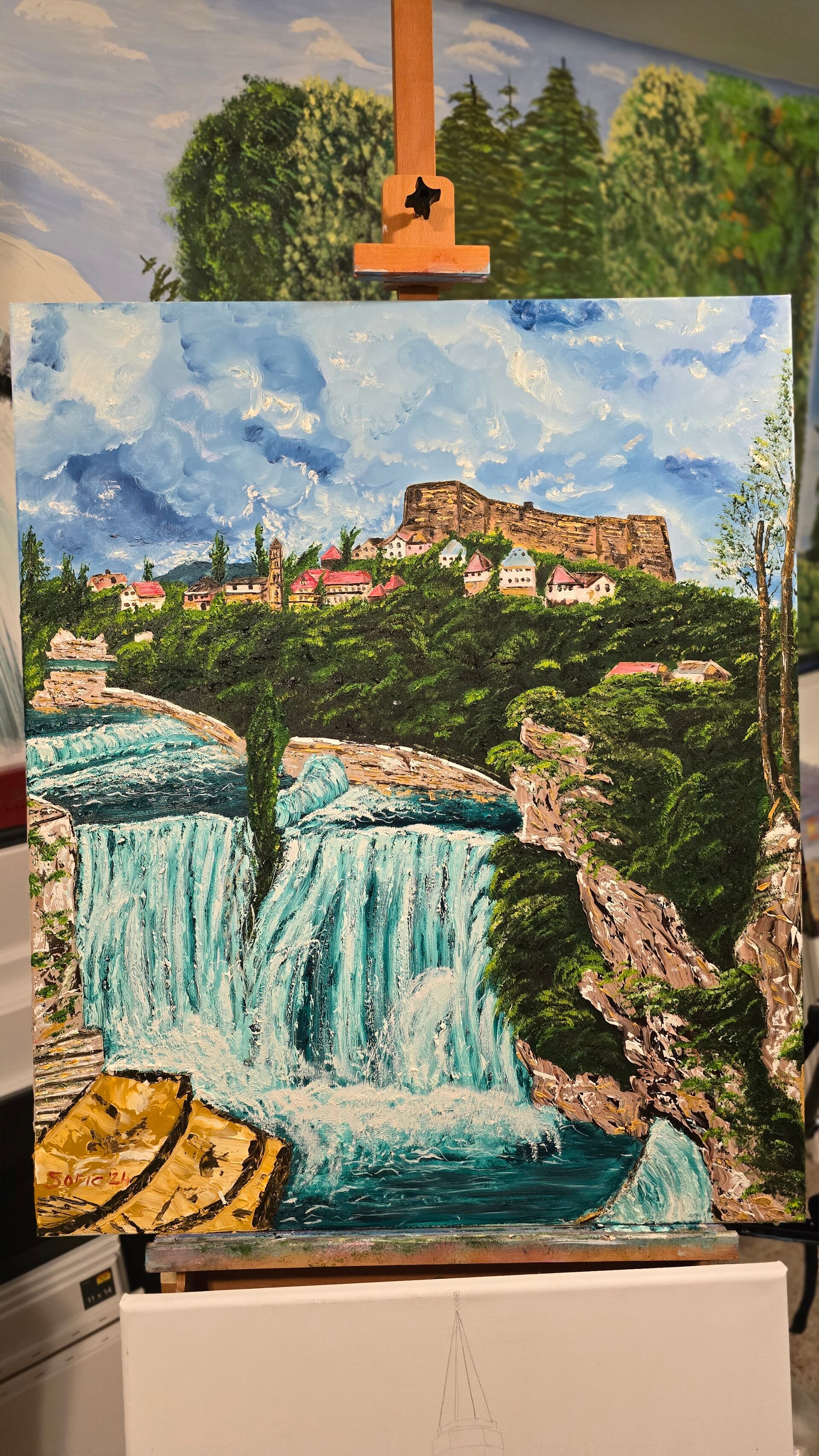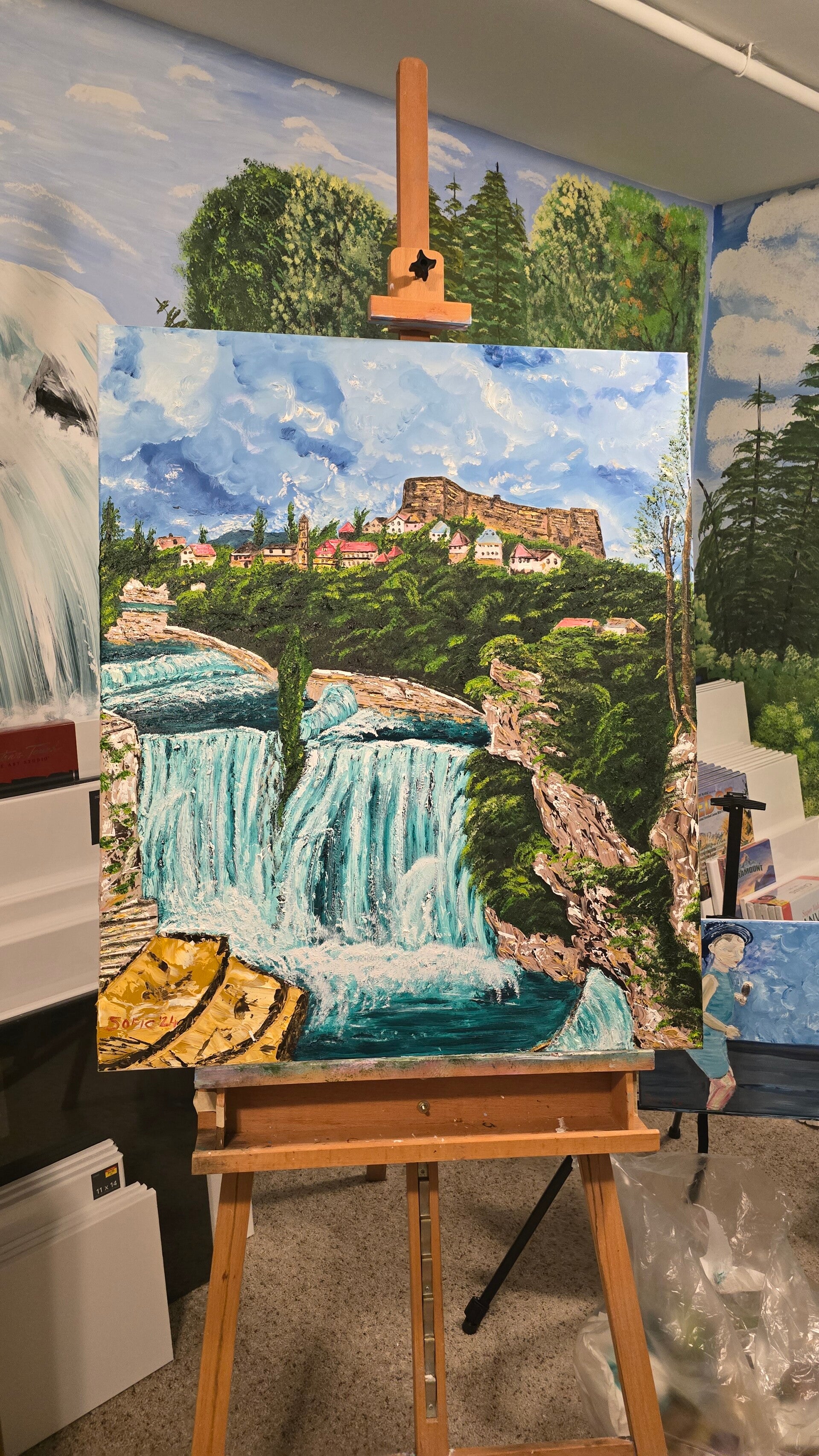 Original oil painting signed by artist and varnished. One of a kind. Streched canvas 30 by 36 inches. Framed. Free shipping.