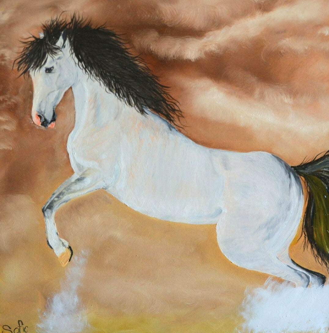 Original oil painting signed by artist and varnished. One of a kind. 20 by 20 inches on stretched canvas. Free shipping.