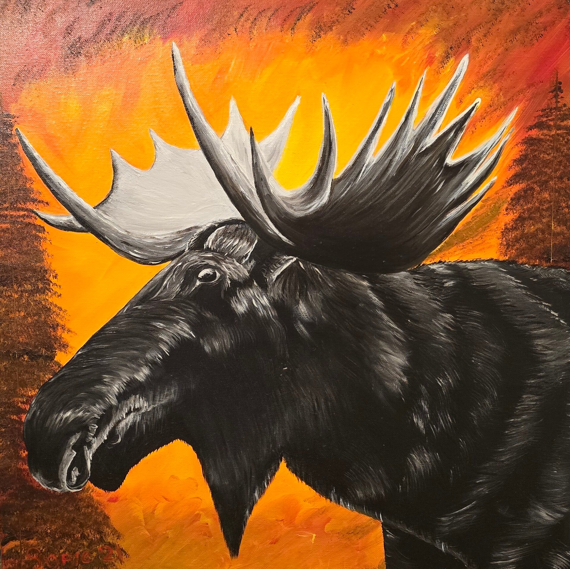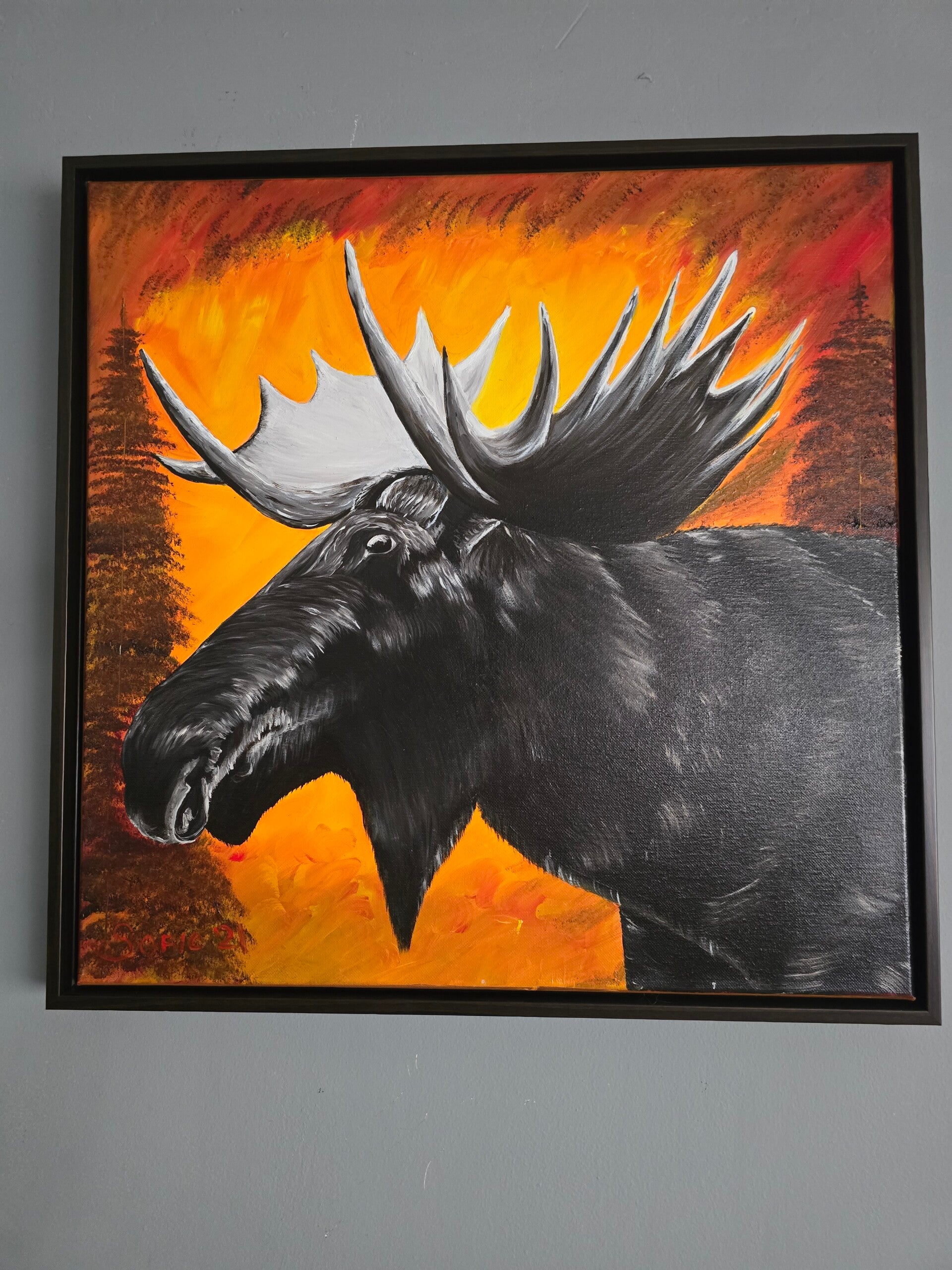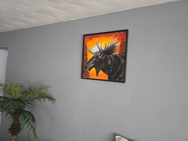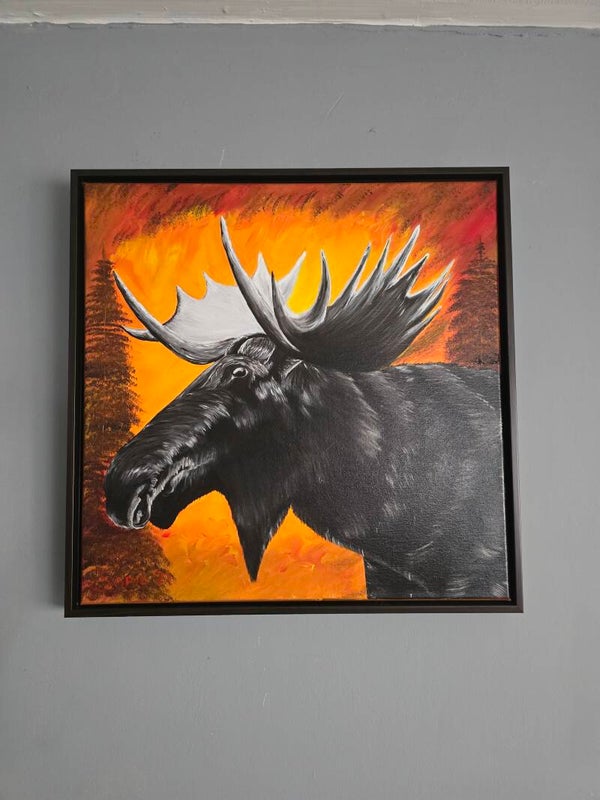 Original oil painting signed by artist and varnished. One of a kind. 20 by 20 inches on stretched canvas. Free shipping. Framed
