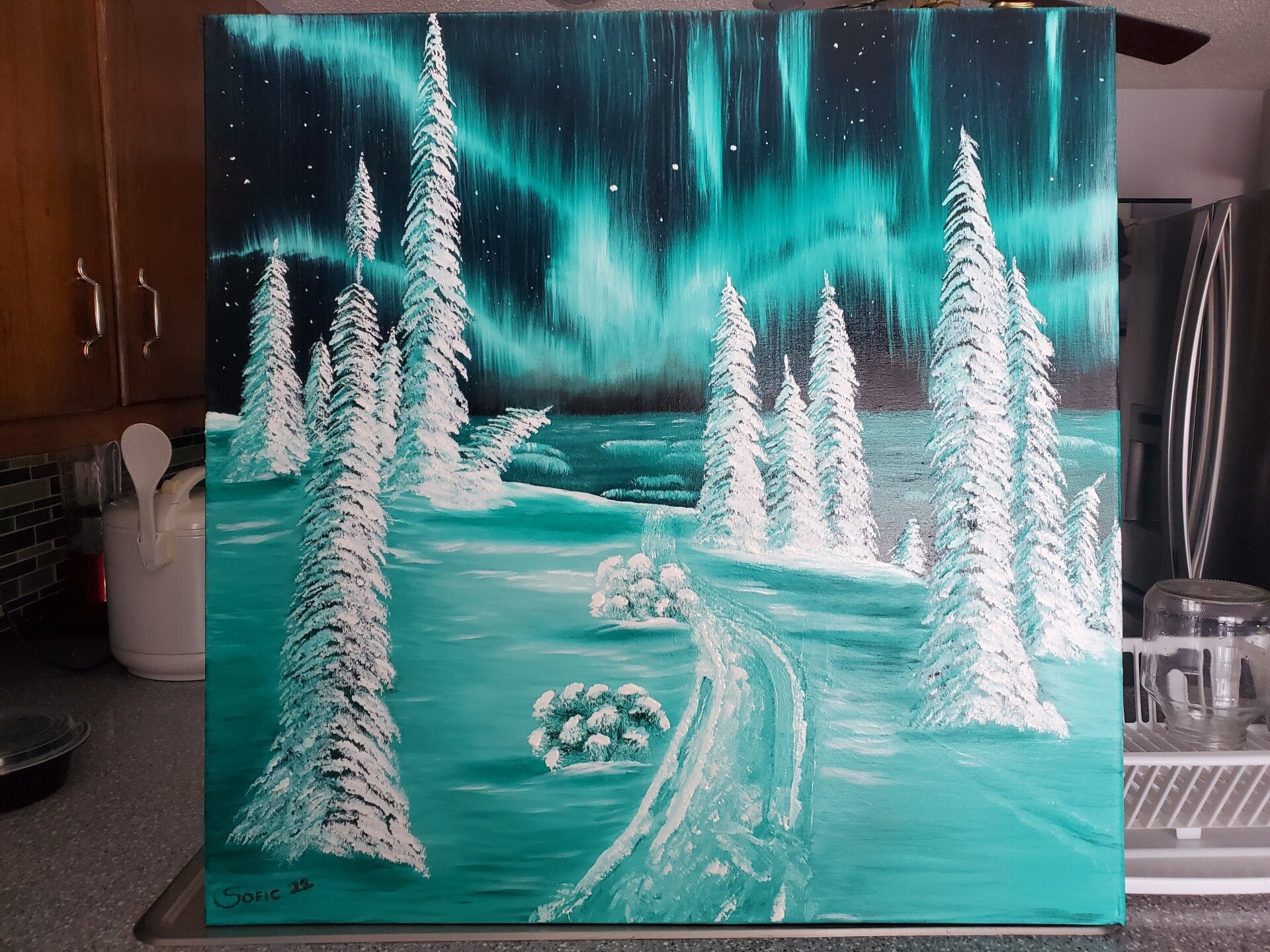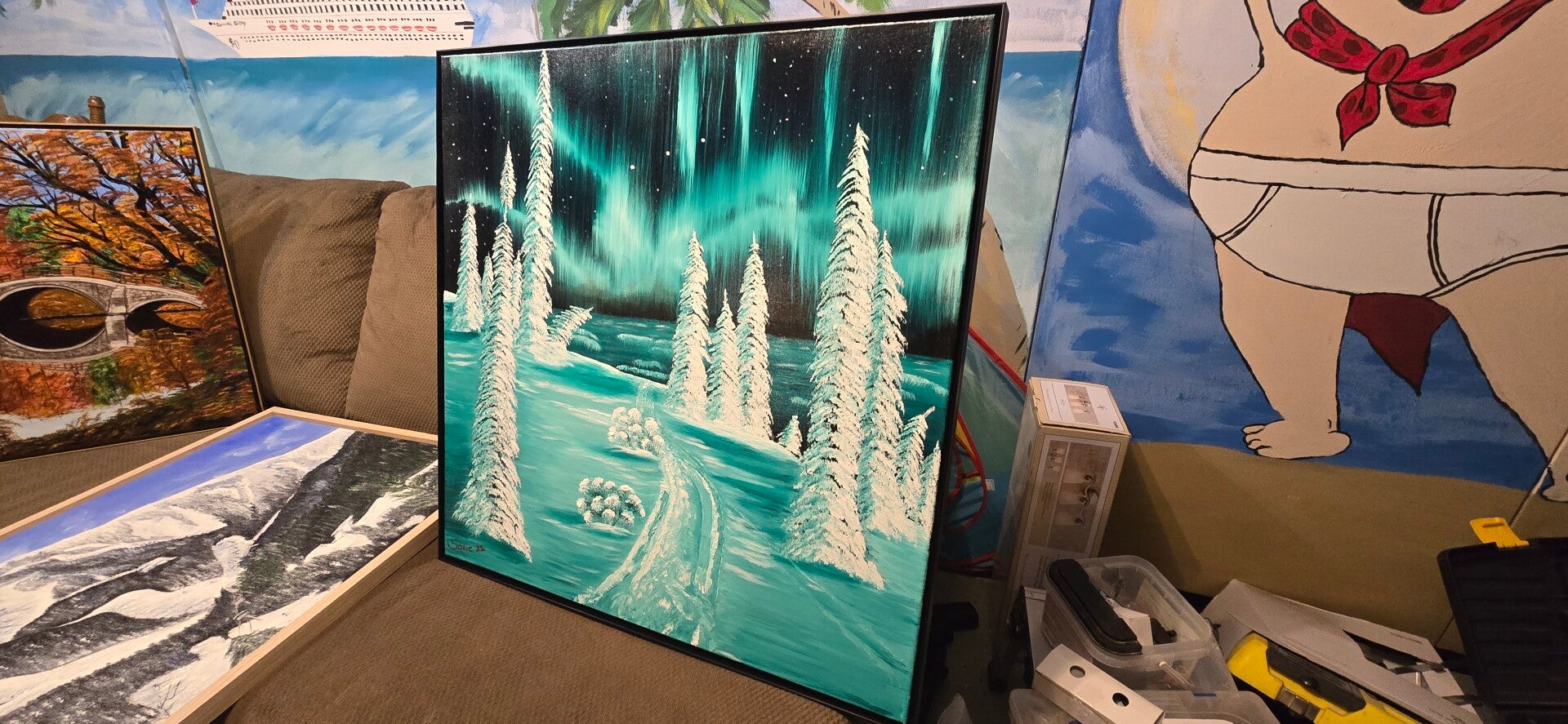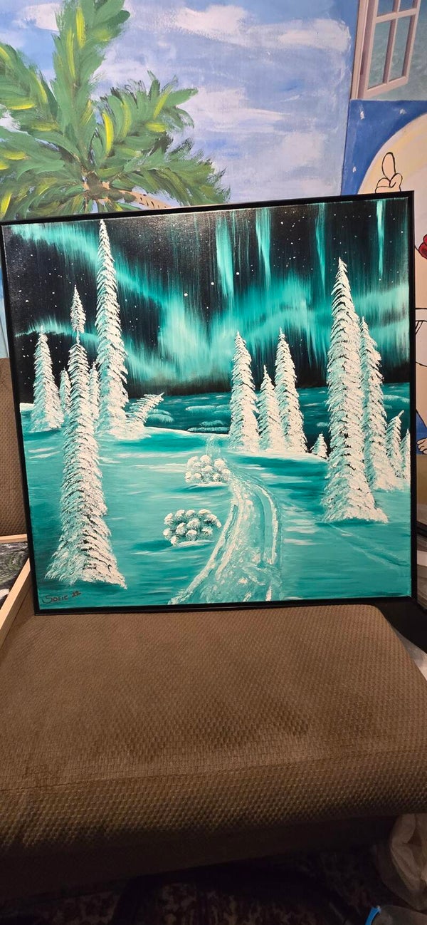 Original oil painting signed by artist and varnished. One of a kind. 30 by 30 inches on stretched canvas. Framed. Free shipping
