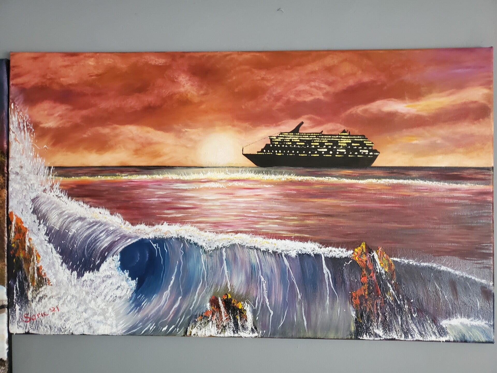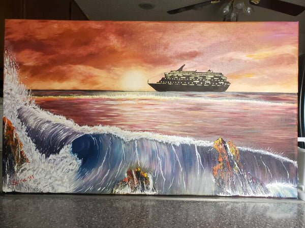 Original oil painting signed by artist and varnished. One of a kind. 18 by 28 inches on stretched canvas. Free shipping