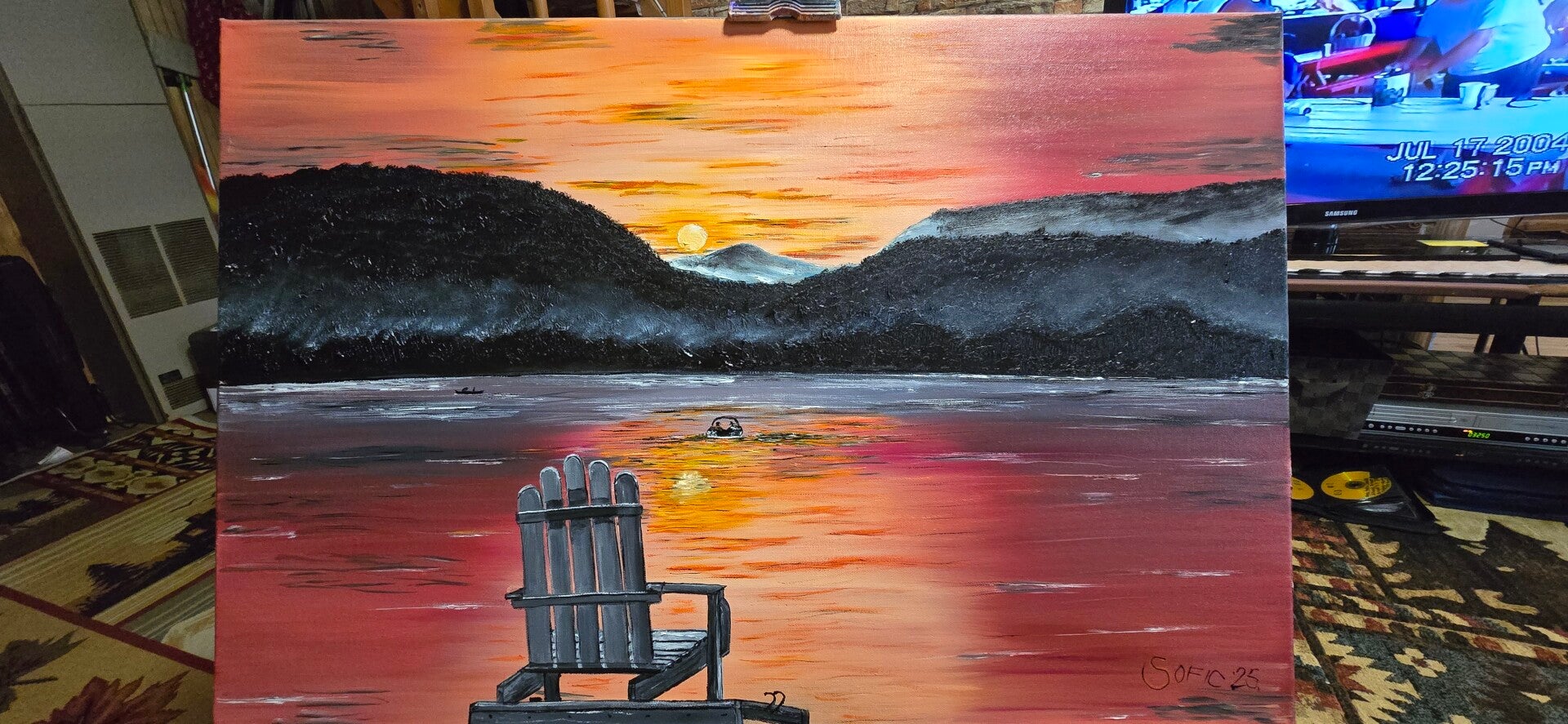 Original oil painting signed by artist and varnished.  One of a kind.  20 by 30 inches on stretched canvas. Framed.  Free shipping
