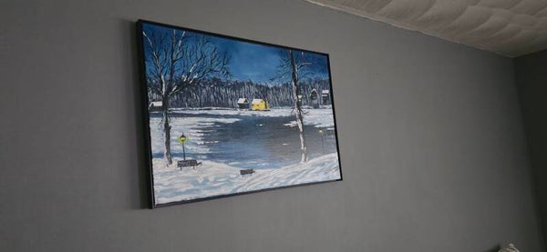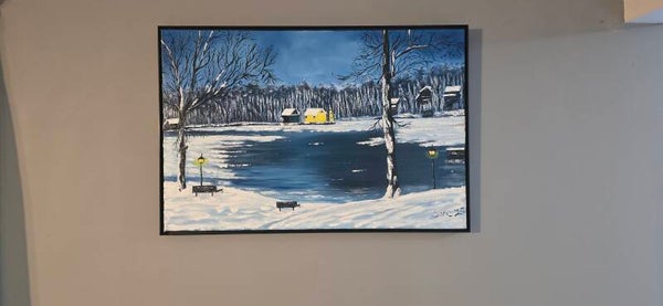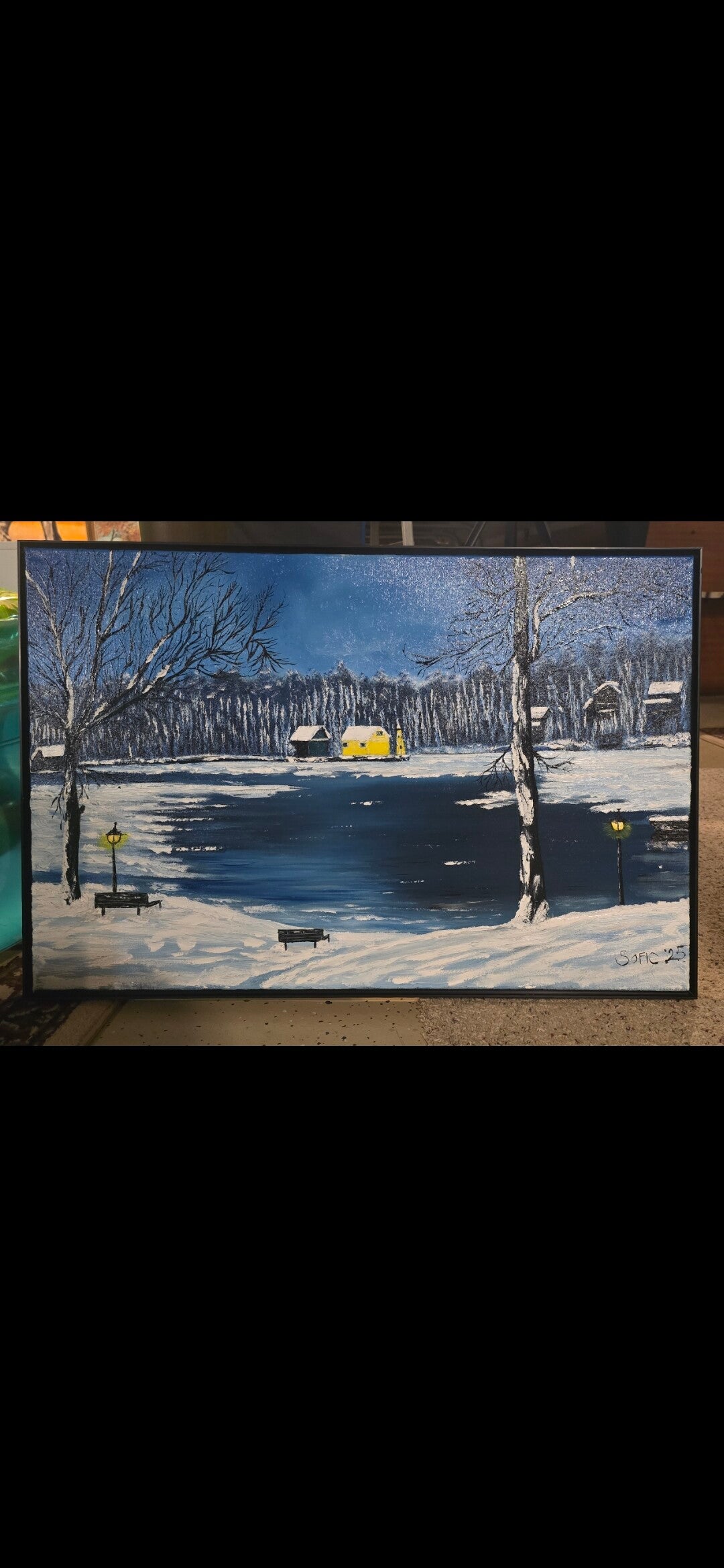 Original oil painting signed by artist and varnished. One of a kind. 20 by 30 inches on stretched canvas. Framed. Free shipping