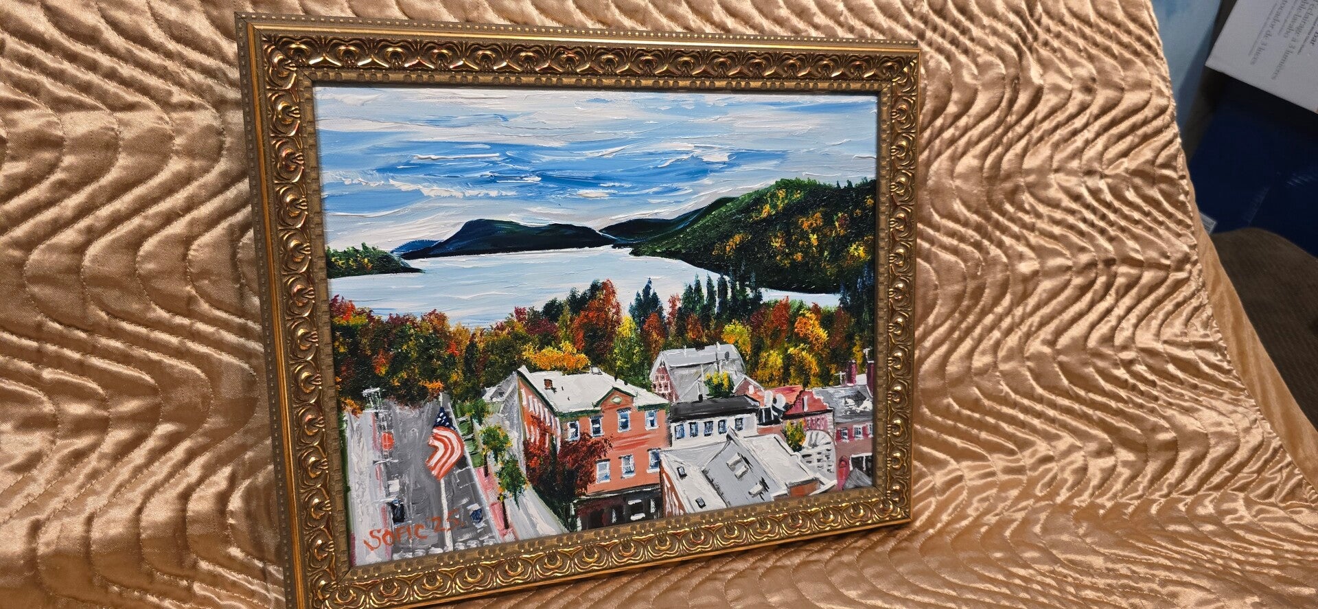 Original oil painting signed by artist and varnished. One of a kind. 11 by 14 on stretched canvas. Framed. Free shipping. SOLD.