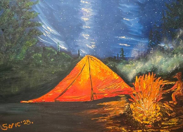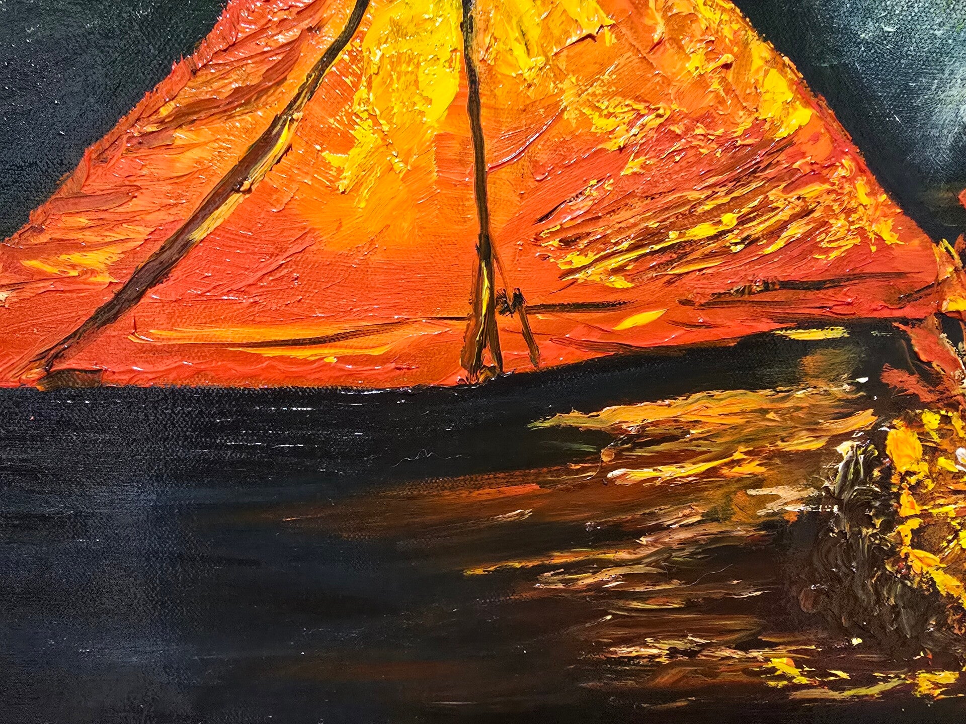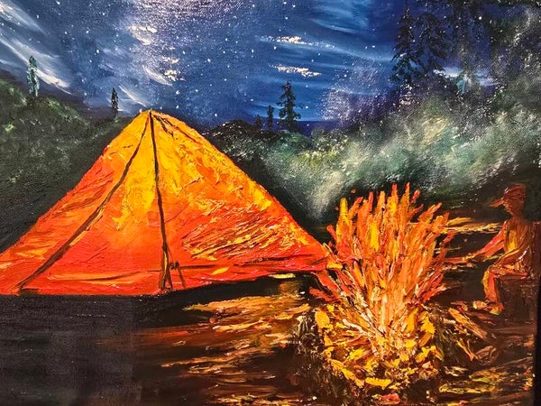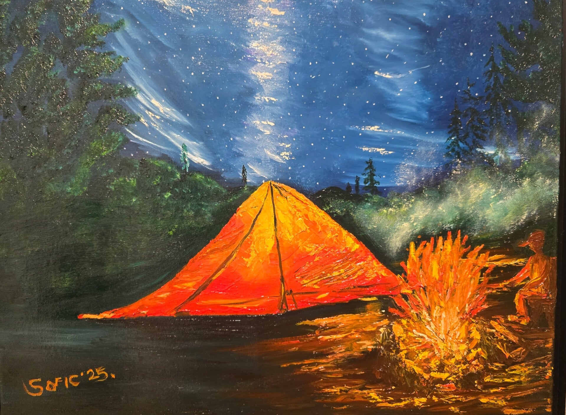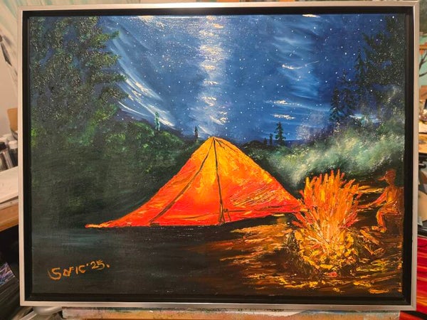 Original oil painting signed by artist and varnished . One of a kind. 18 by 24 on streched canvas. Framed. Free shipping.