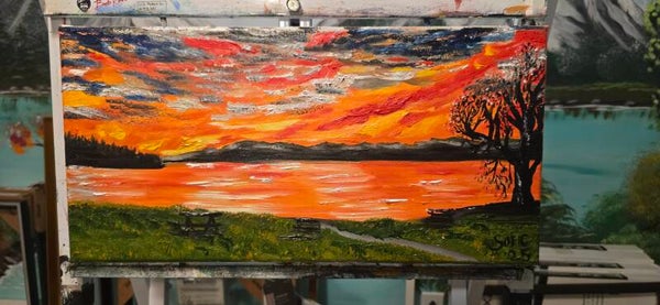 Original oil painting signed by artist and varnished. One of a kind. 20 by 10 inches Framed. Free shipping