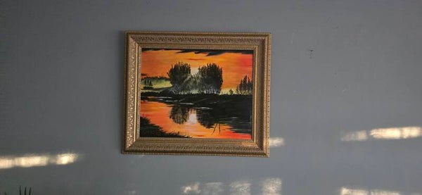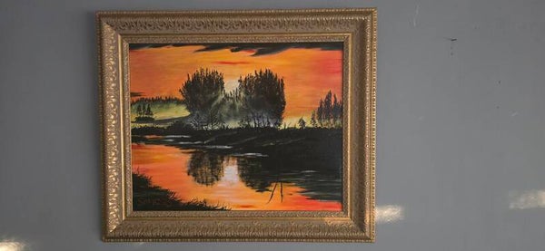 Original oil painting signed by artist and varnished. One of a kind. 20 by 16 inches on stretched canvas. Framed. Free shipping