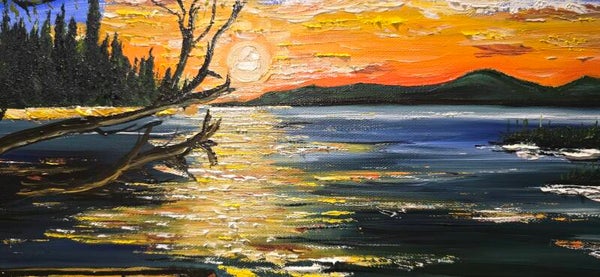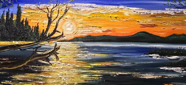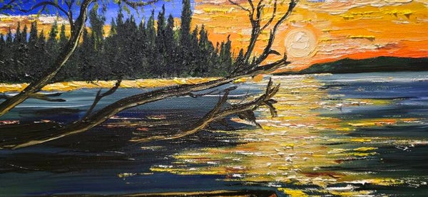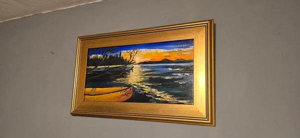 Original oil painting signed by artist and varnished. One of a kind. 20 by 10 inches. Framed. Free shipping