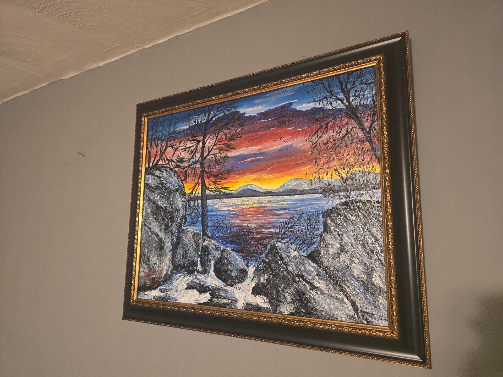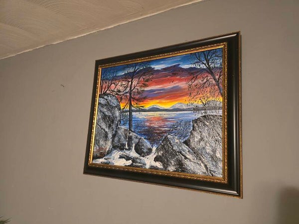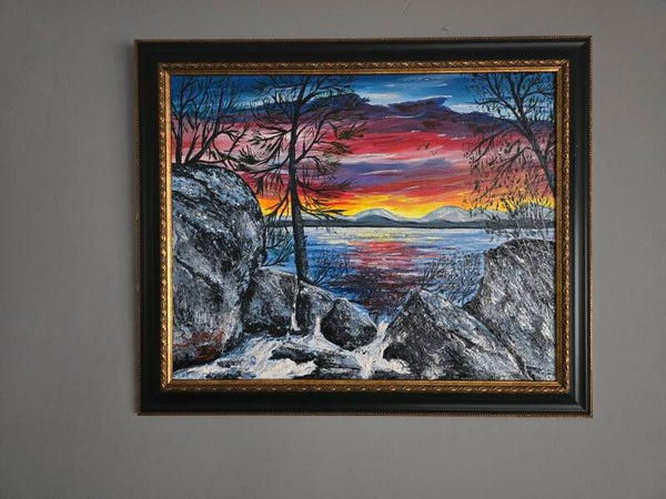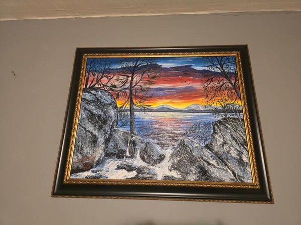 Original oil painting signed by artist and varnished. One of a kind. 16 by 20 inches on canvas panel. Framed. Free shipping.
