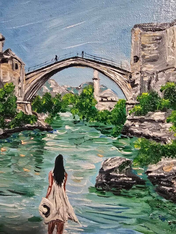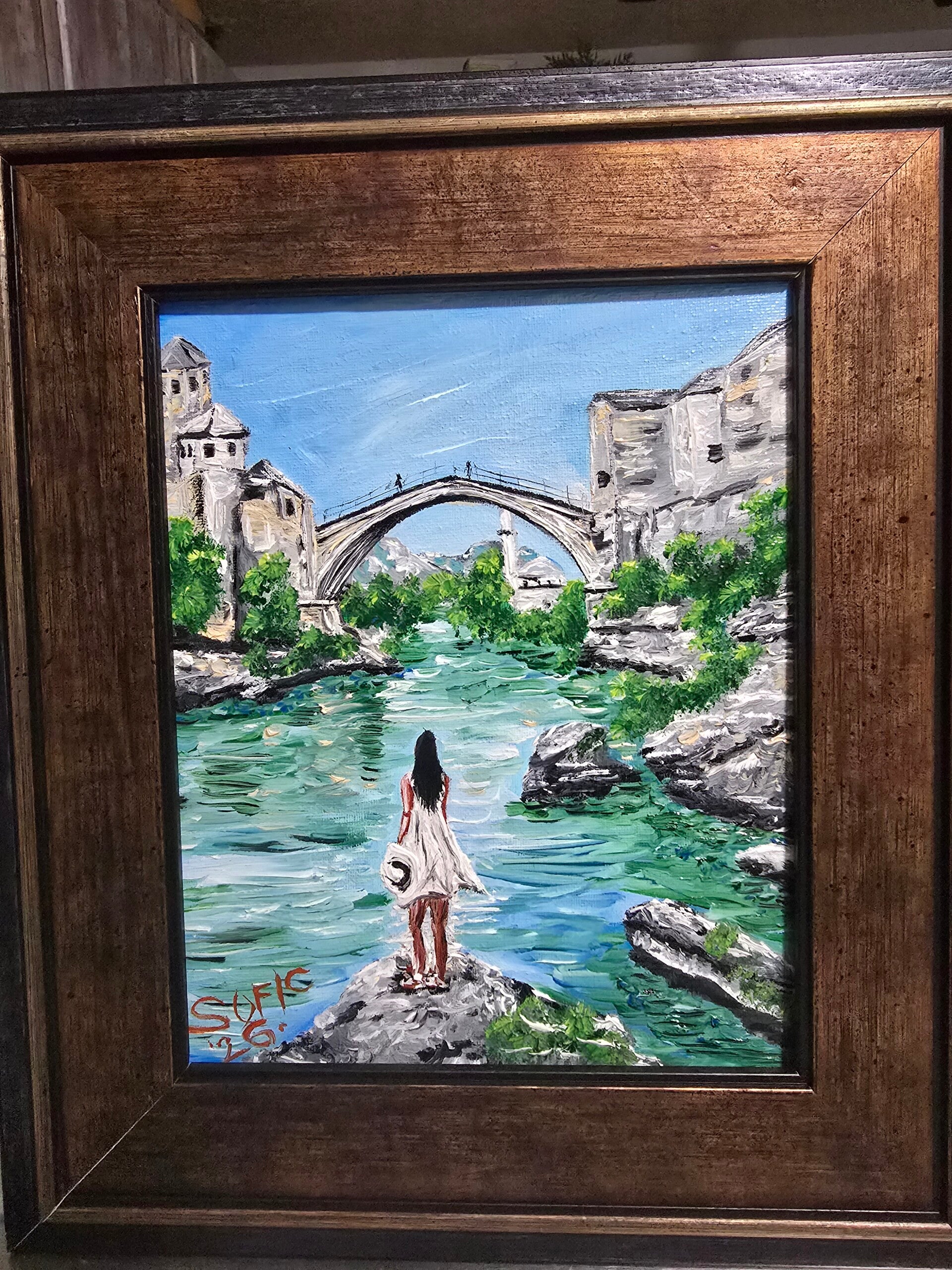 Original oil painting signed by artist and varnished. One of a kind. 10 by 8 inches on canvas panel. Framed