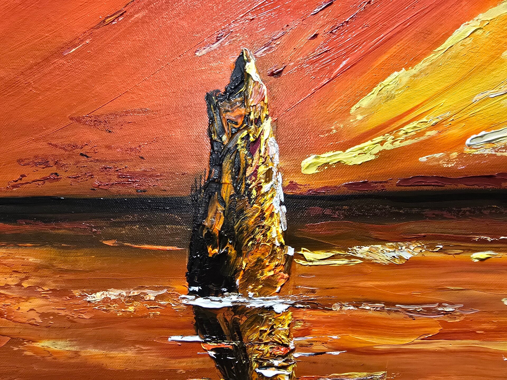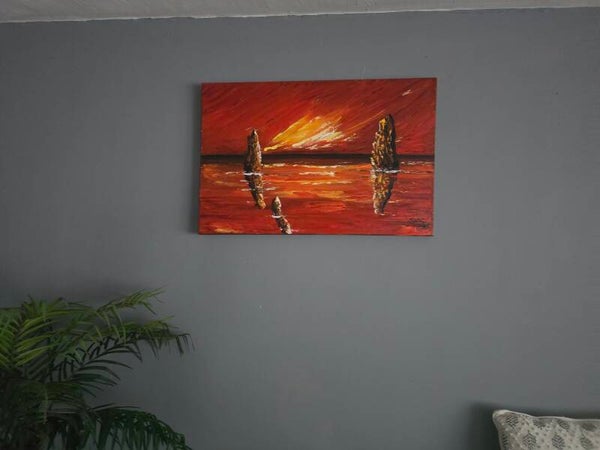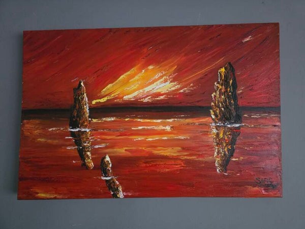 Original oil painting signed by artist and varnished. One of a kind. 20 by 30 inches on stretched canvas. Gallery wrapped.