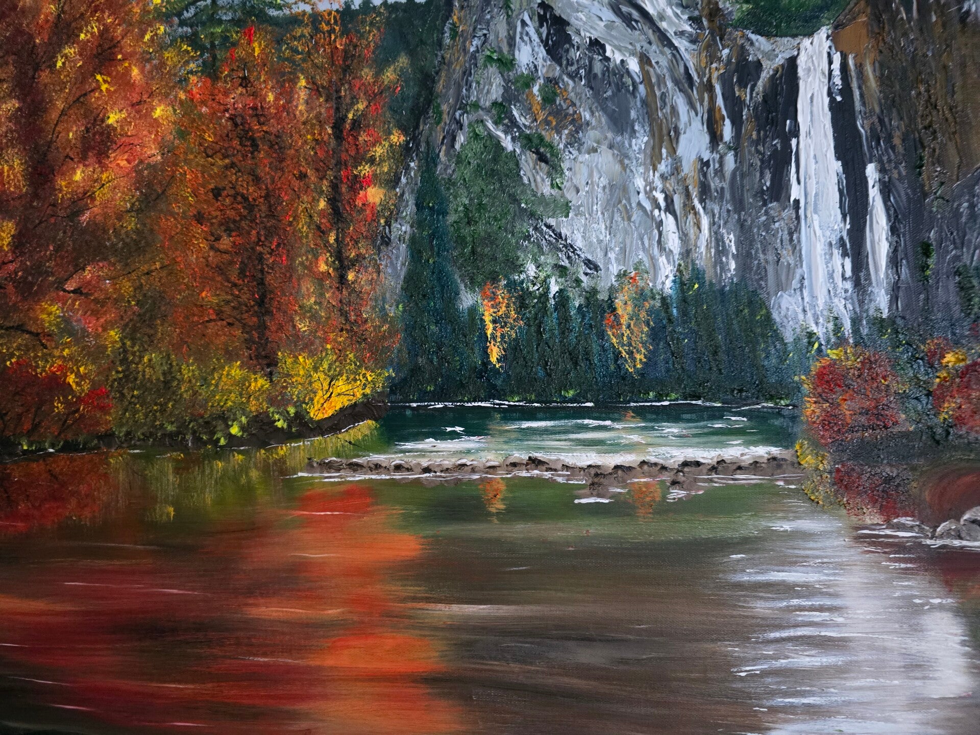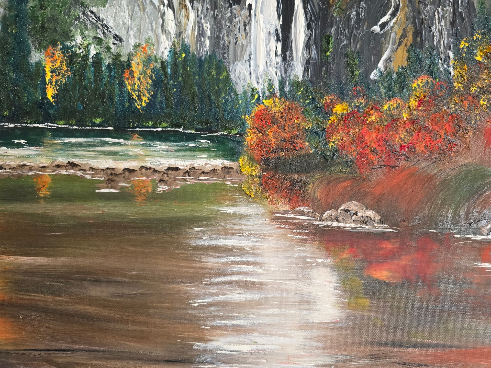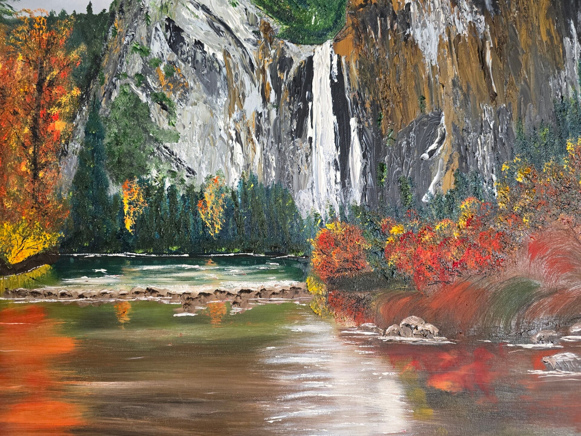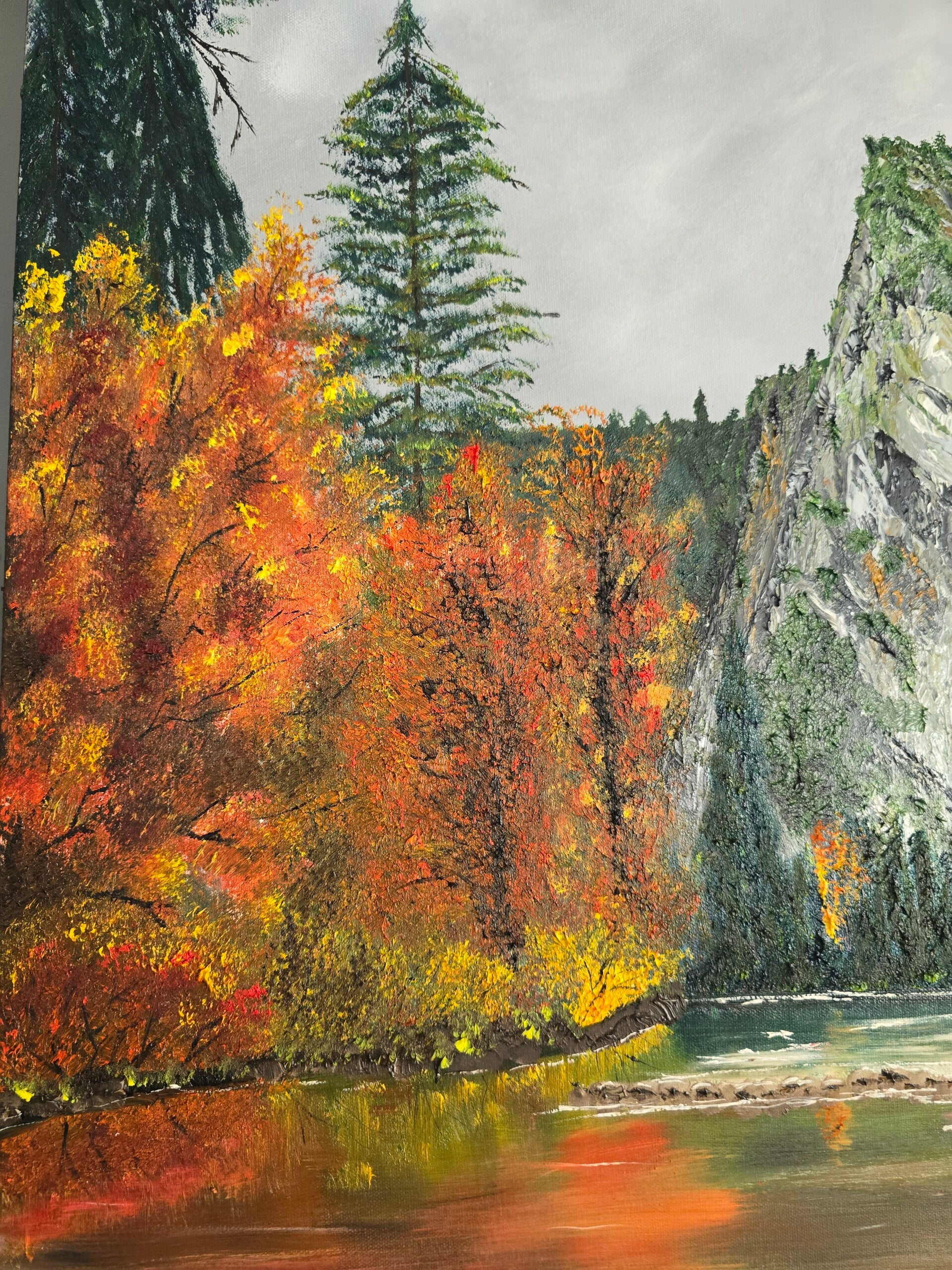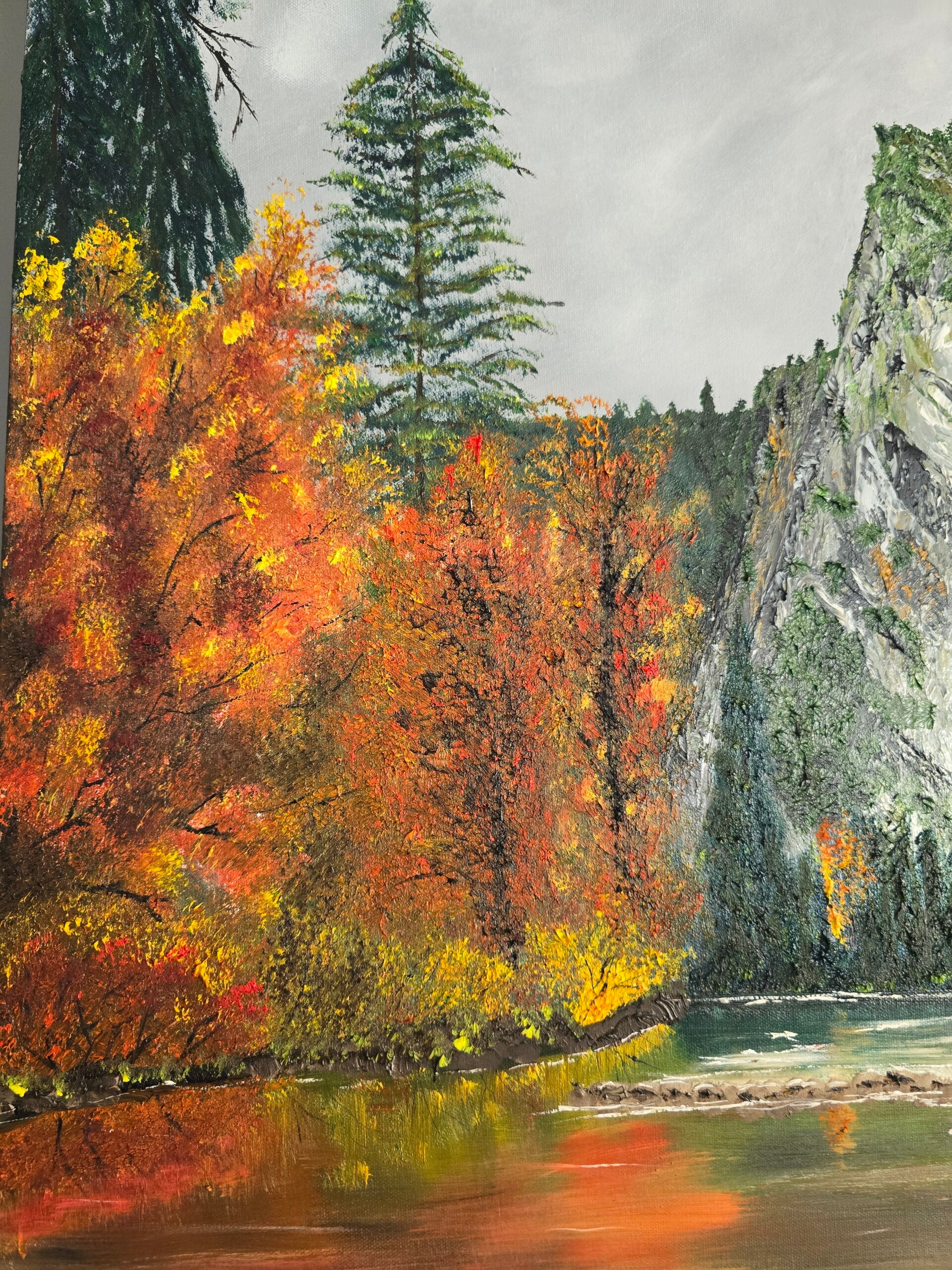 Original oil painting signed by artist and varnished. One of a kind. 30 by 40 inches on stretched canvas. Gallery wrapped 1.5 inches tick