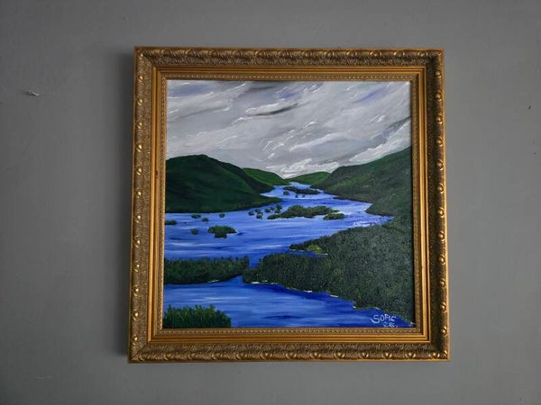 Original oil painting signed by artist and varnished. One of a kind. 20 by 20 inches on stretched canvas. Framed. Free shipping