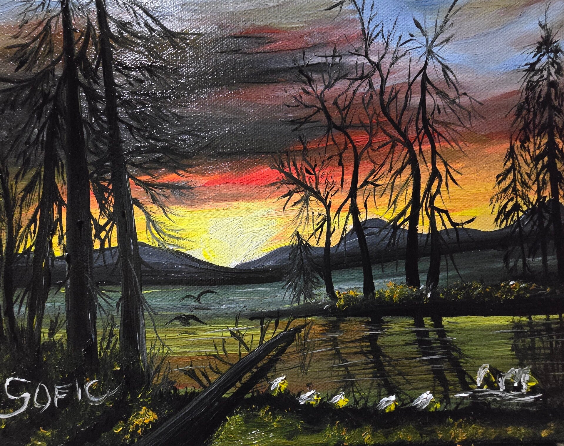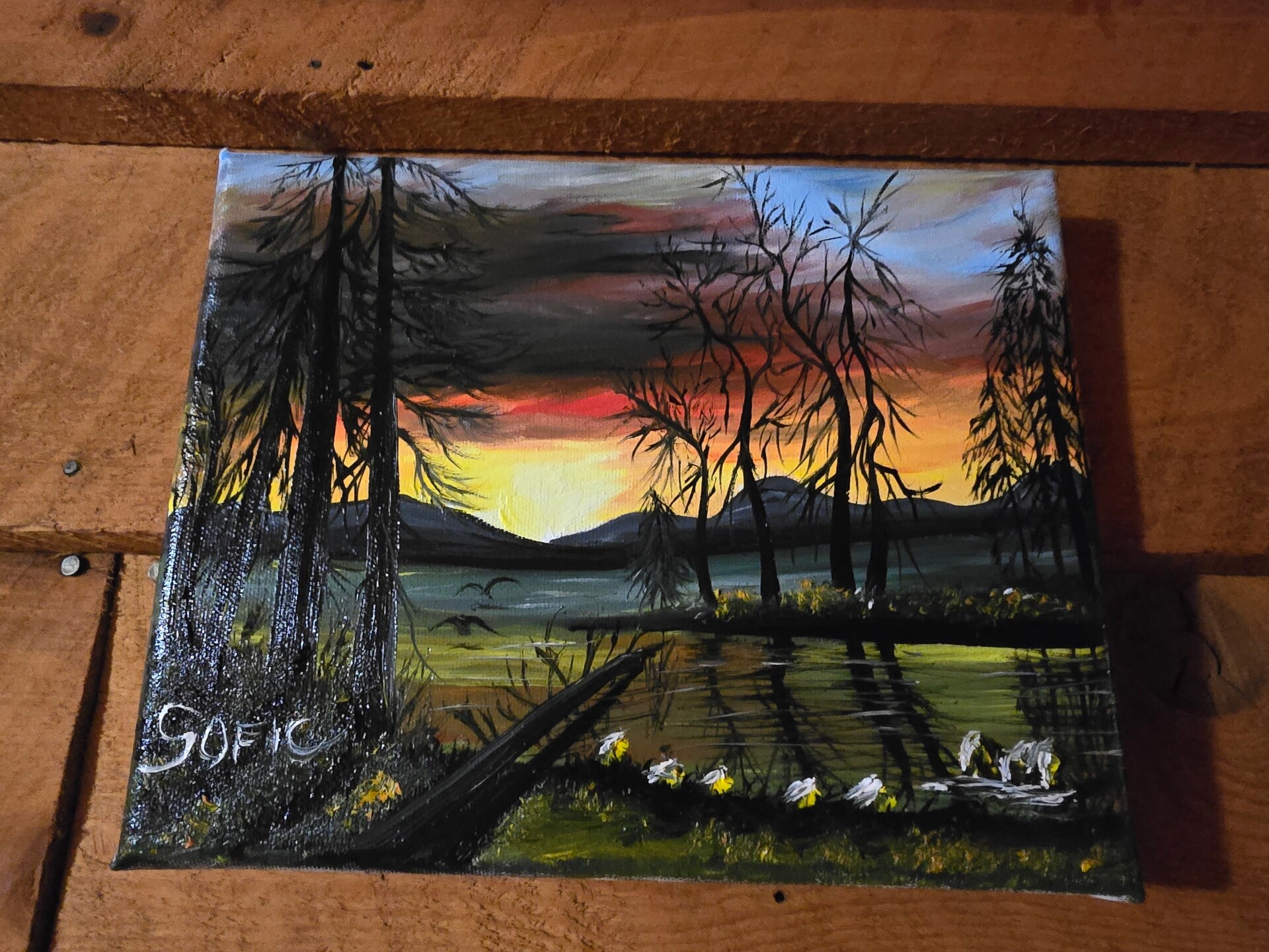 Original oil painting signed by artist and varnished. One of a kind. 8 by 10 inches on stretched canvas. Framed. Free shipping