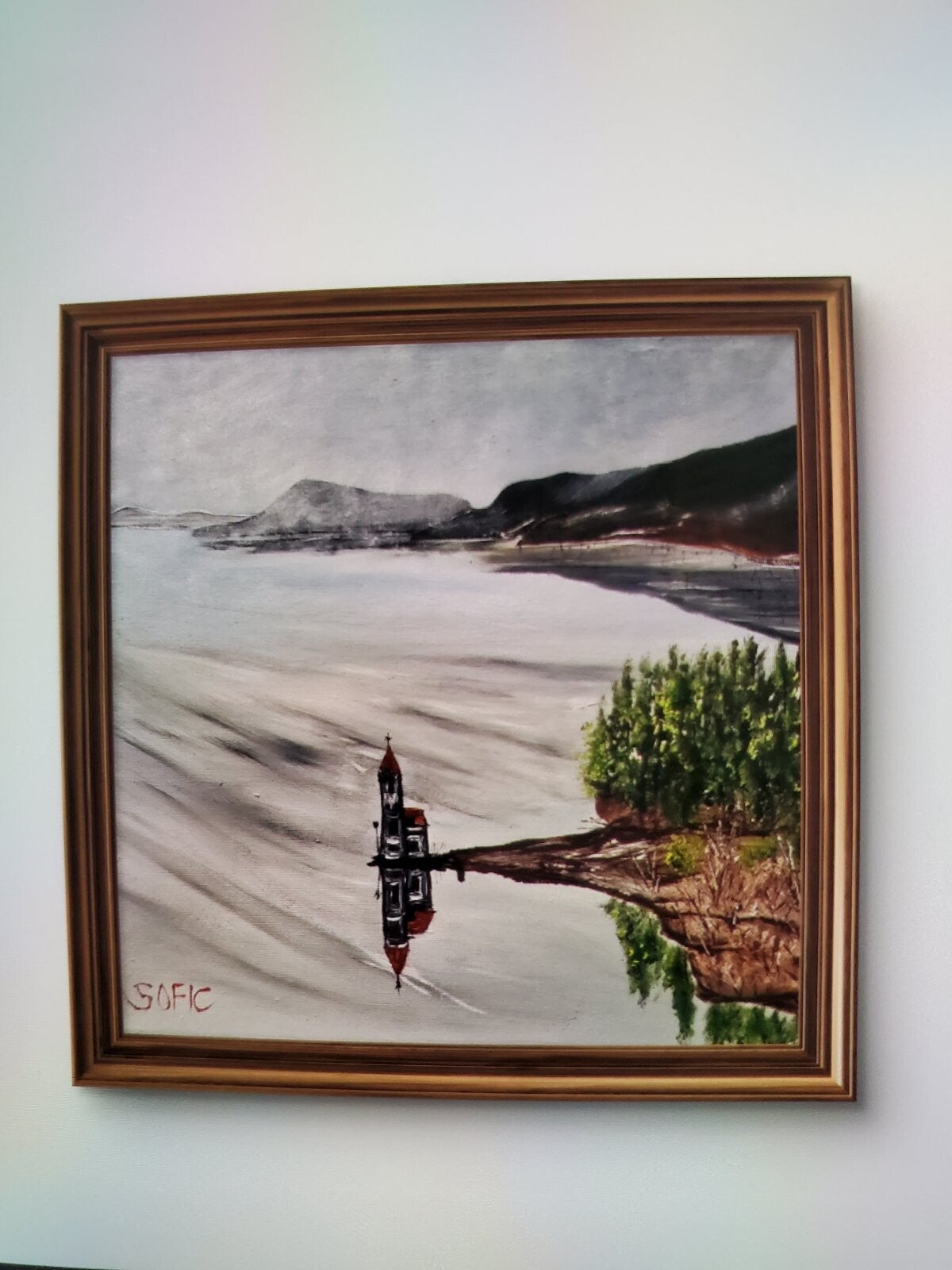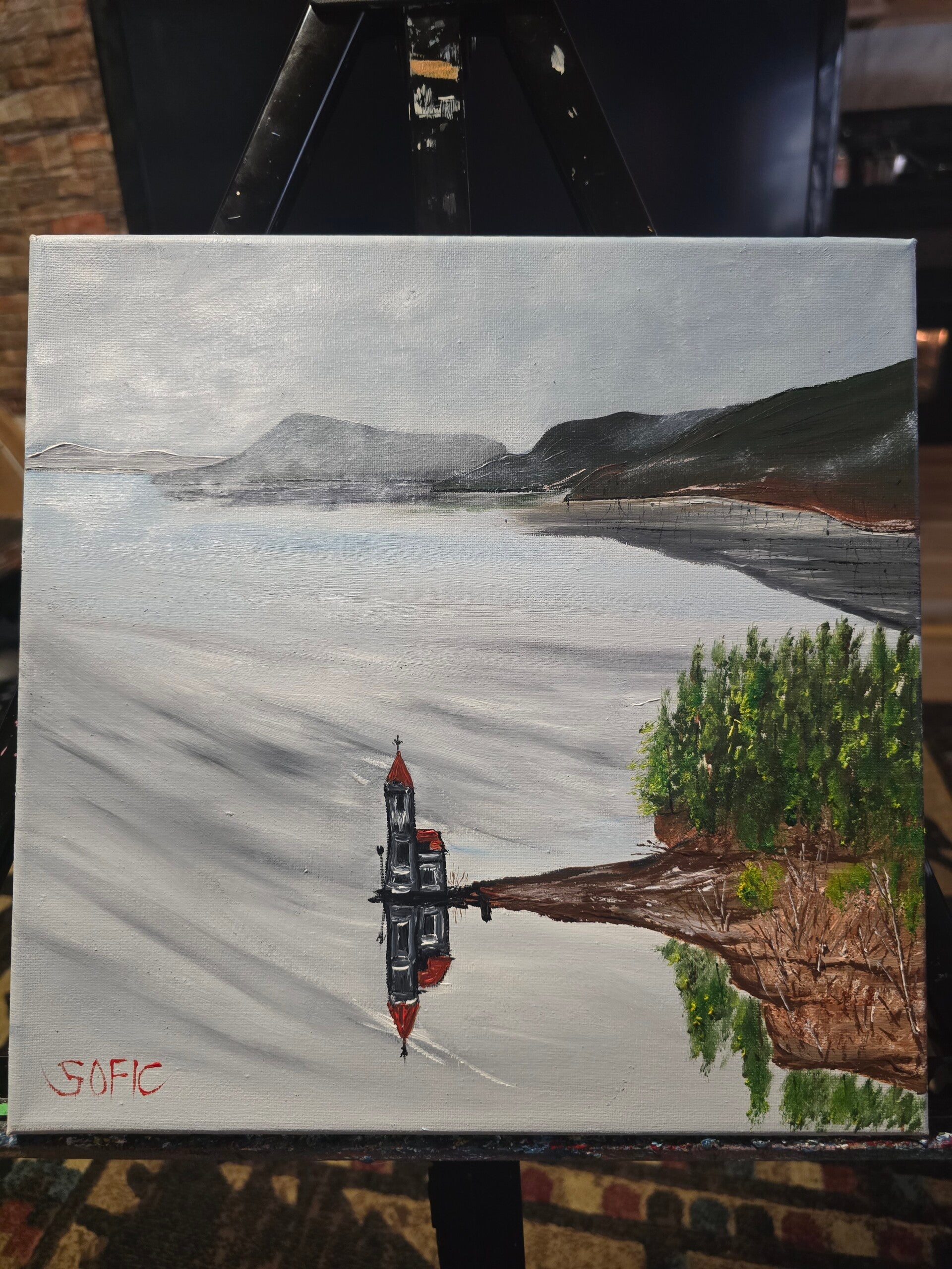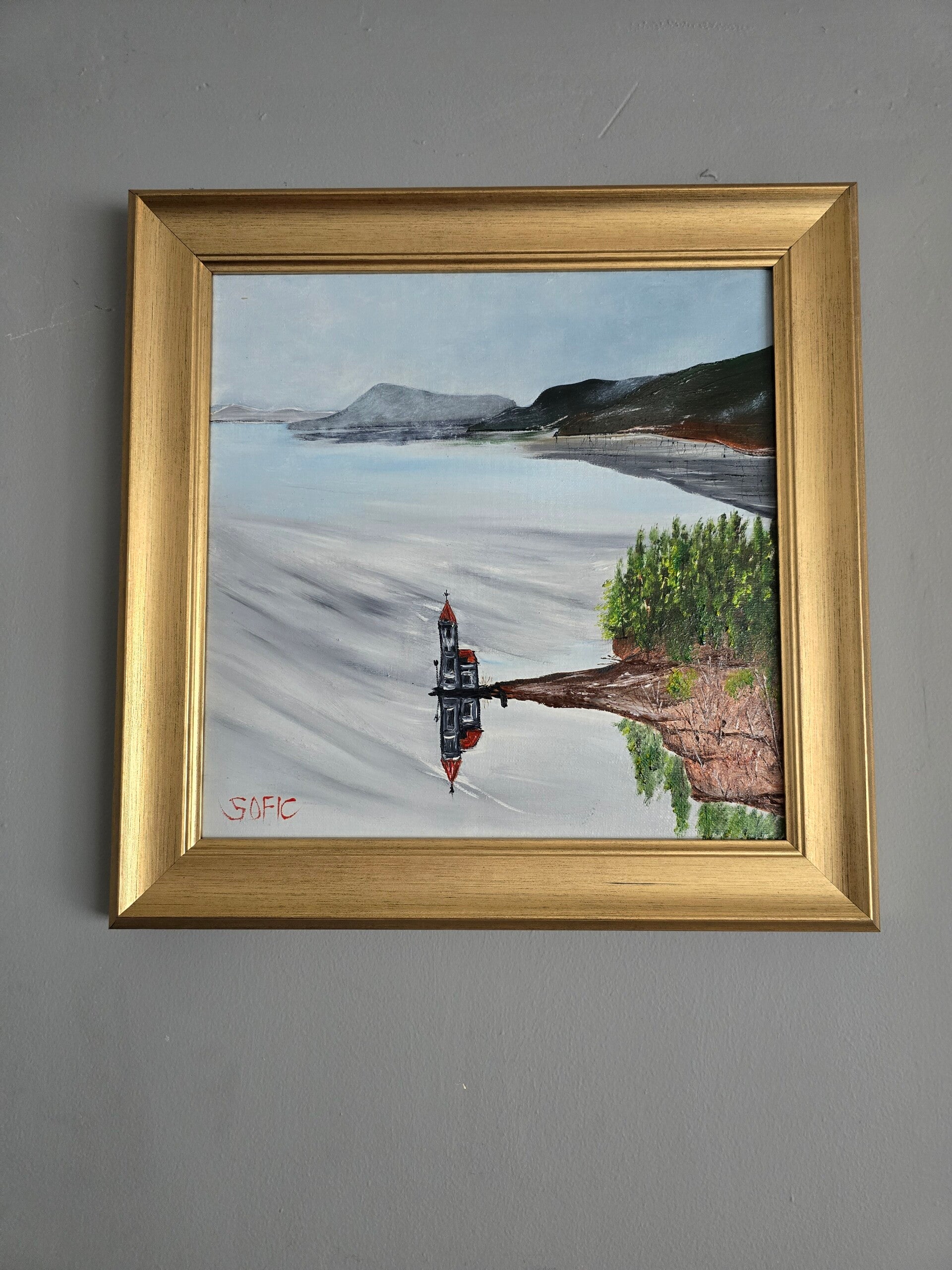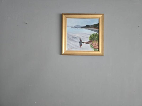 Original oil painting signed by artist and varnished. One of a kind. 12 by 12 on stretched canvas. Framed. Free shipping