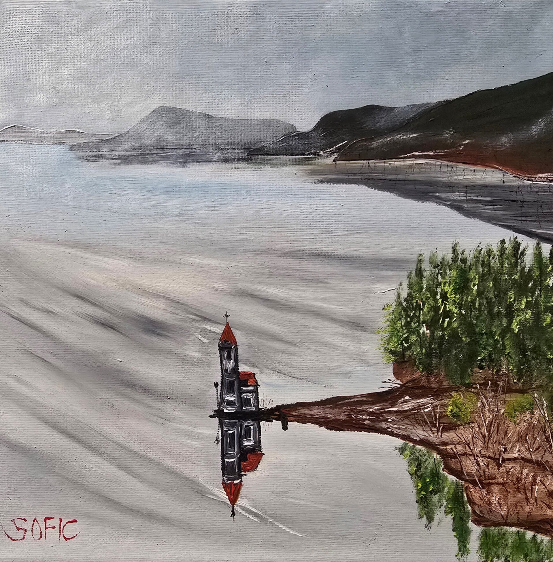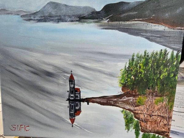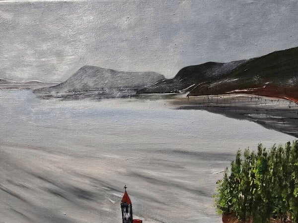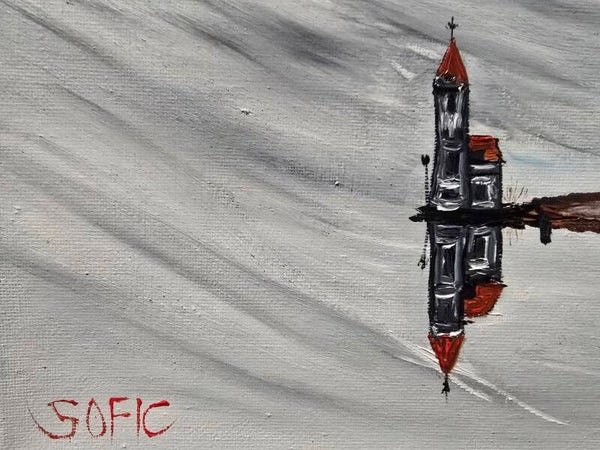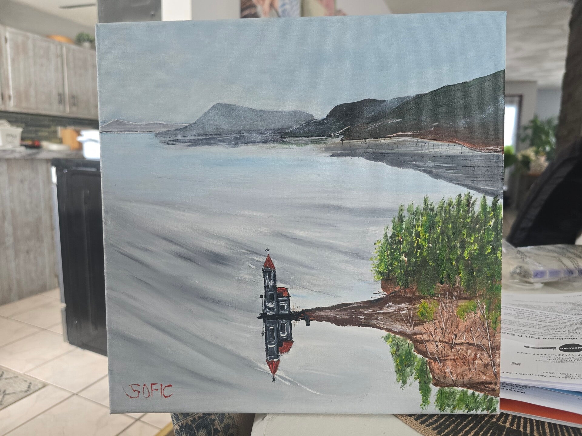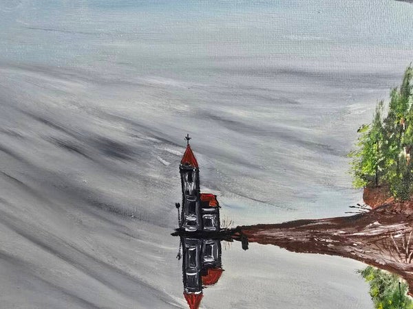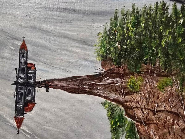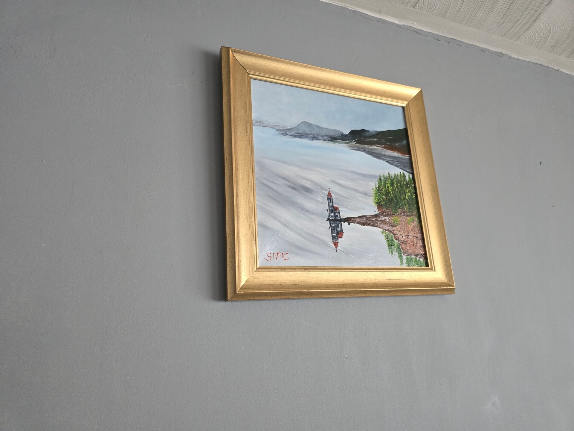 Original oil painting signed by artist and varnished. One of a kind. 12 by 12 on stretched canvas. Framed. Free shipping