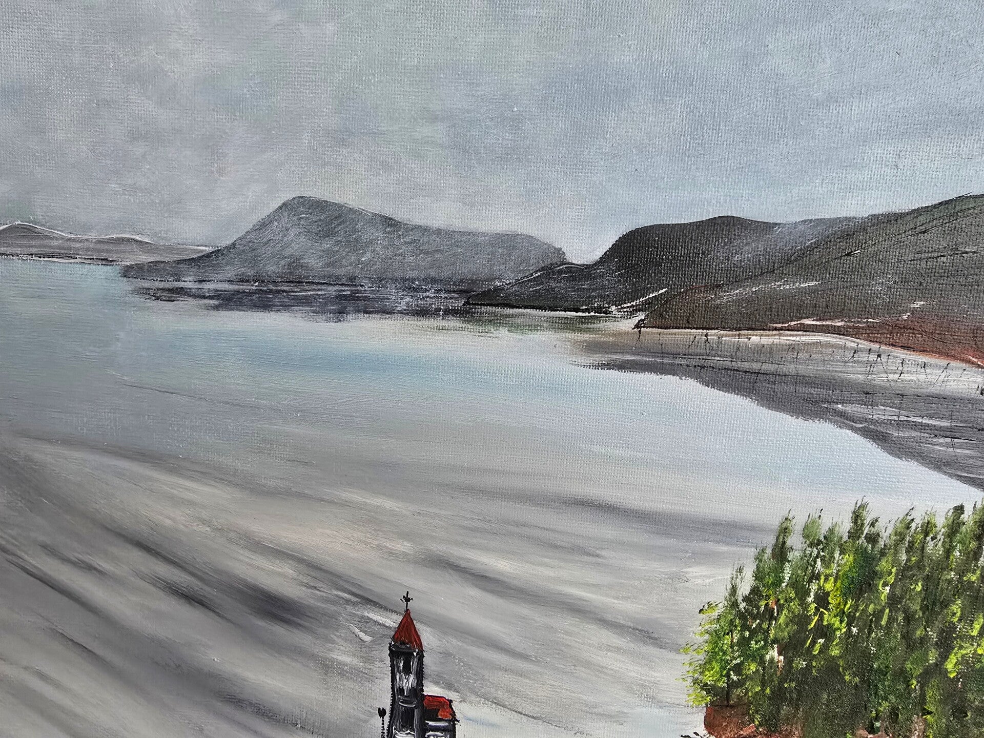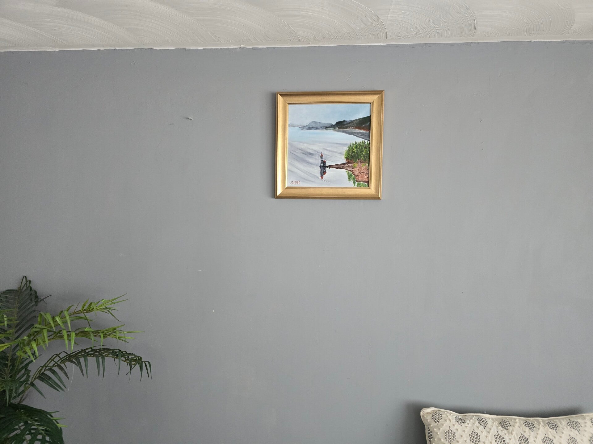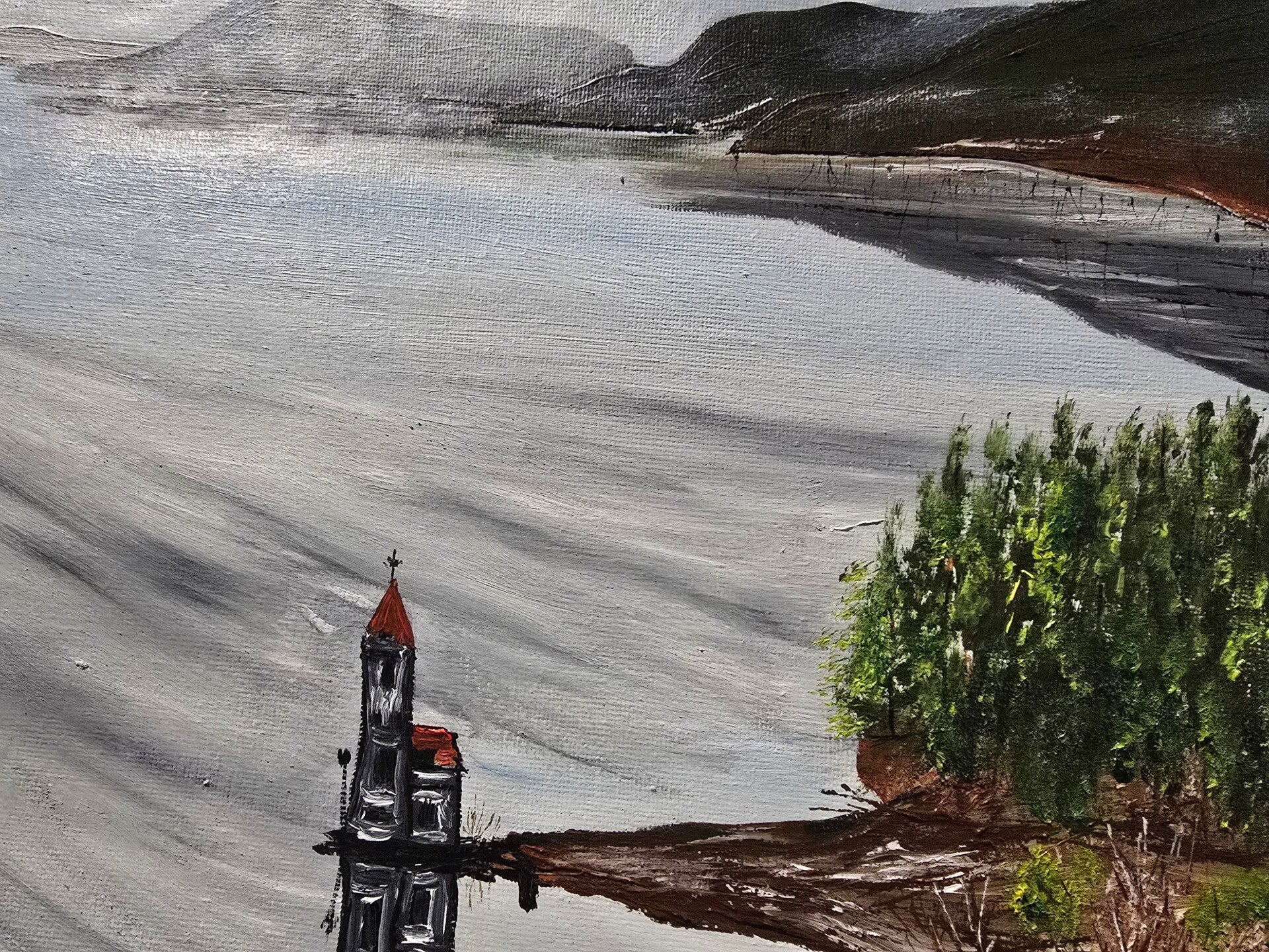 Original oil painting signed by artist and varnished. One of a kind. 12 by 12 on stretched canvas. Framed. Free shipping