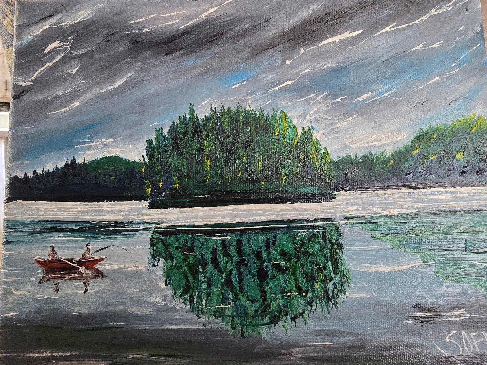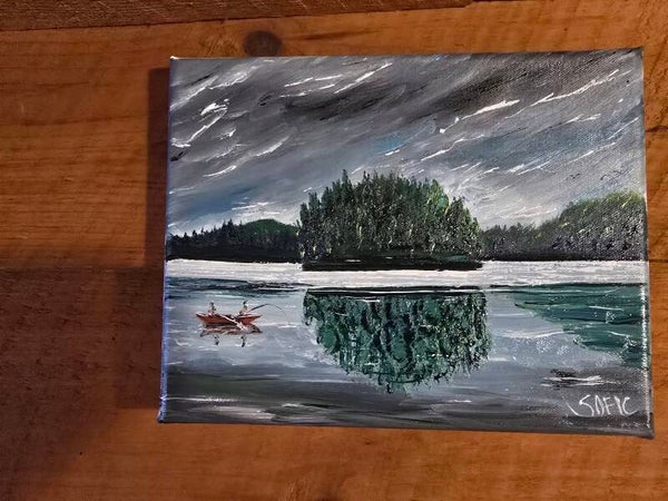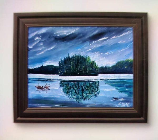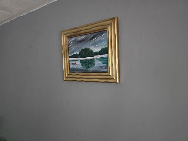 Original oil painting signed by artist and varnished. One of a kind. Framed. 8 by 10 inches on stretched canvas. Free shipping