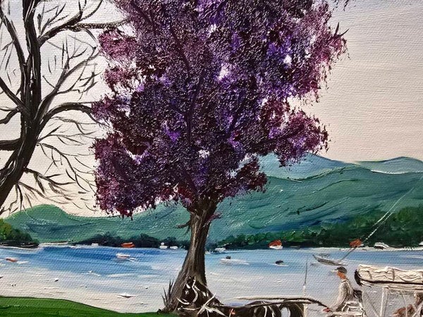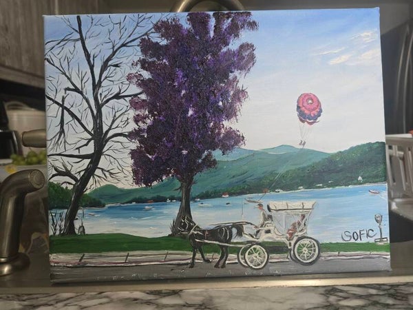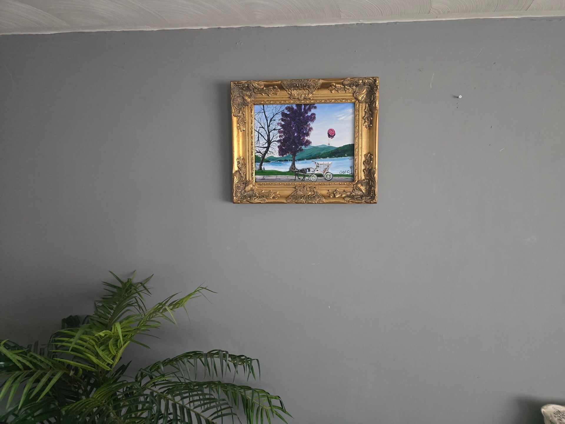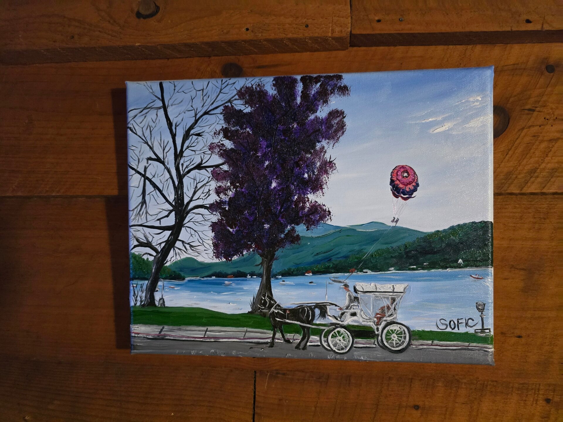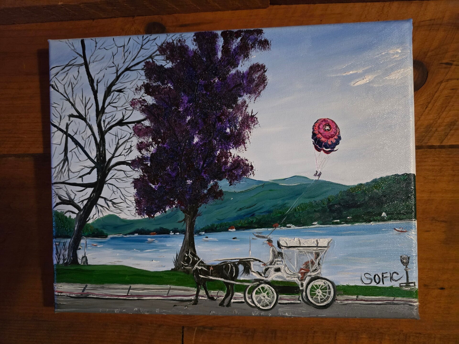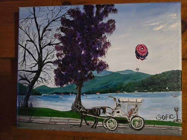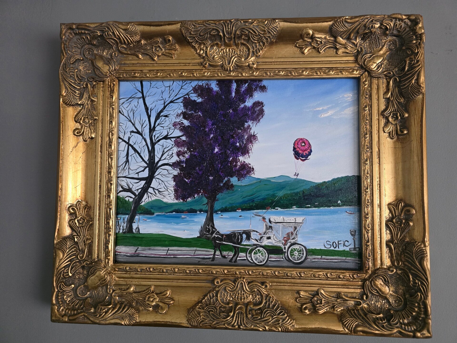 Original oil painting signed by artist and varnished. One of a kind. 11 by 14 inches on stretched canvas. Framed. Free shipping.