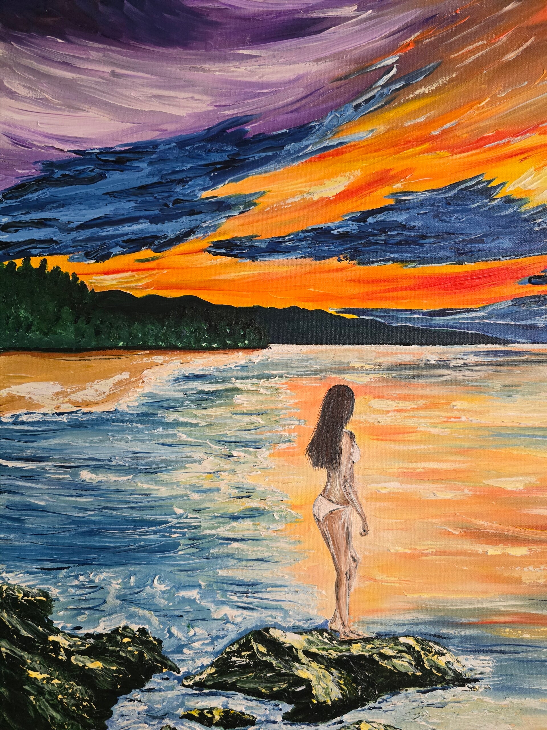 Original oil painting signed by artist and varnished. One of a kind. 20 by 24 inches on linen canvas. Gallery wrapped.